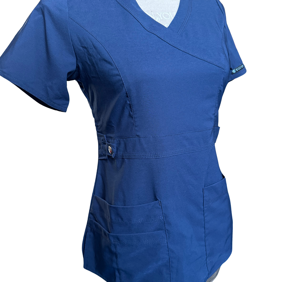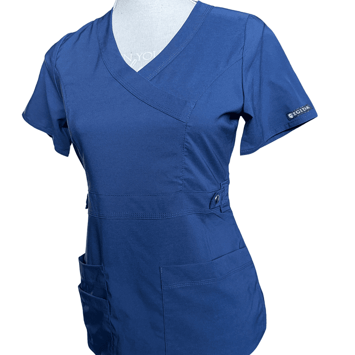 Este top está hecho de 88% poliéster - 12% Spandex, lo que asegura una la alta durabilidad de colores vivos en el tiempo. Confeccionamos en cuello en “V”. con corte princesa para dar una mejor figura a tu cuerpo. Cuenta con dos bolsillos laterales tradicionales, más un bolsillo pequeño.