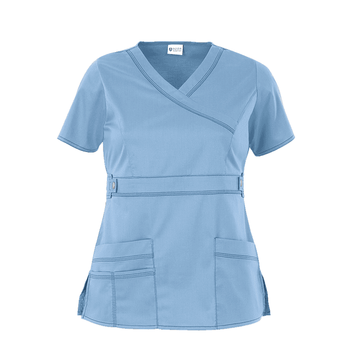 Esta blusa clínica color celeste combina comodidad, estilo y funcionalidad, ideal para médicas, enfermeras, matronas y profesionales de la salud.